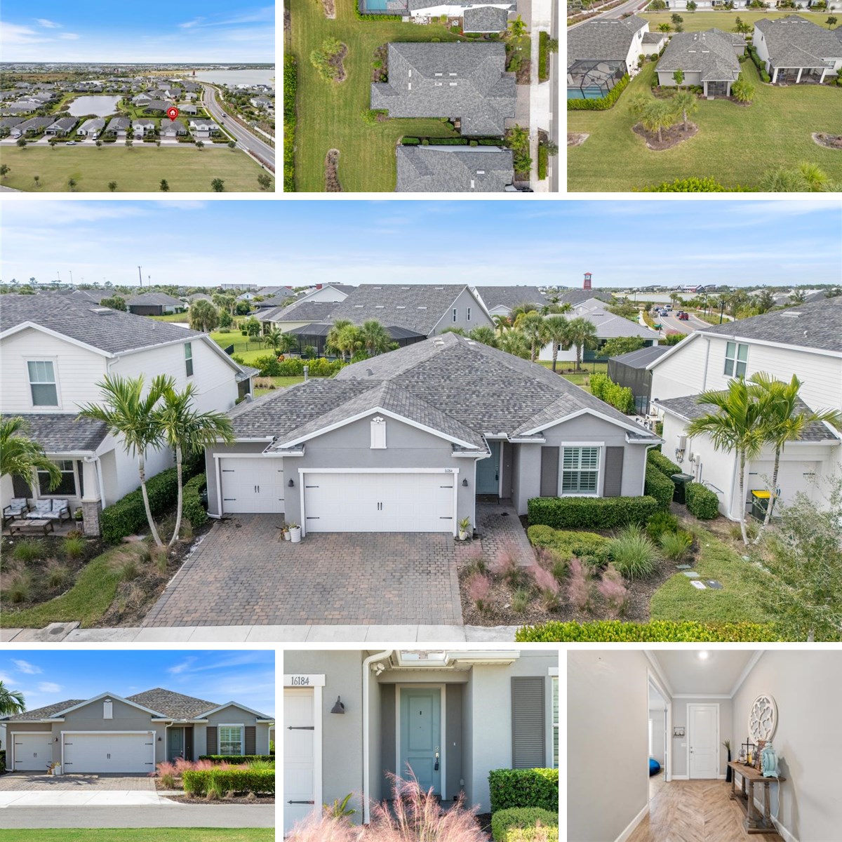 Welcome to this charming home in the highly sought-after Babcock Ranch community! This stunning 3-bedroom plus den, 2-bathroom residence offers 2,144 square feet of thoughtfully designed living space that perfectly balances elegance and comfort. Step inside to discover beautiful porcelain tile flowing throughout the home, complemented by plantation shutters that bathe every room in natural light. The heart of the home features a gourmet kitchen with porcelain backsplash above the counters and on the island, while the impressive wine bar with dual refrigerators and glass backsplash makes entertaining a breeze! The living room impresses with a custom built-in entertainment center featuring wired surround sound, beams and tray ceiling details. Crown molding adds sophisticated touches throughout the main living areas and primary bedroom, which boasts a walk-in closet and luxurious bathroom with walk-in shower and dual sinks. Practical features include a spacious 3-car garage and natural gas connections. The location truly sets this property apart—positioned on a quiet one-way street with an expansive green space directly in front that will never be developed, ensuring permanent privacy and tranquil views. Babcock Ranch offers exceptional amenities within walking distance, including top-rated Babcock Neighborhood School, community pools, and Founder's Square. Jack Peeples Community Park provides additional recreational opportunities, while Publix Super Market ensures convenient shopping. This innovative neighborhood combines modern living with small-town charm, creating the perfect environment for making lasting memories.