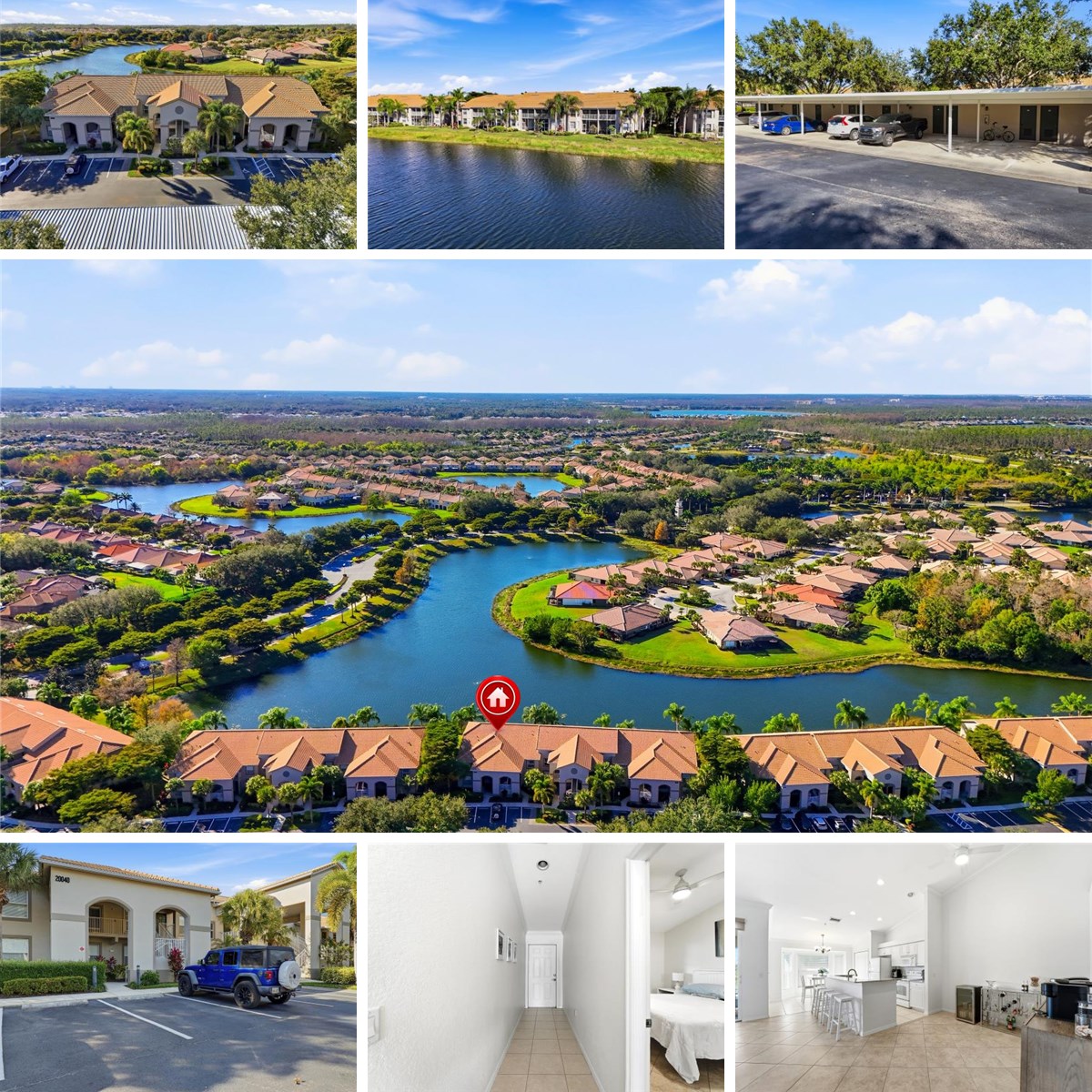 Welcome to your slice of Florida paradise in the sought-after Bella Terra community! This beautifully maintained two-bedroom, two-bathroom condo offers 1,160 square feet of thoughtfully designed living space with the kind of sunset lake views that you dream of. Step inside and immediately appreciate the vaulted ceilings and abundant natural light streaming through the kitchen's charming bay window. Tile flooring flows throughout, complemented by crown molding that adds a touch of sophistication to the main living areas. The granite countertops provide both style and durability, while modern ceiling fans with remote controls in every room keep things comfortably cool. This home has been updated where it counts—newer air conditioning (2020), roof (2020), refrigerator (2022) and water heater (2023) mean you can focus on enjoying life rather than maintenance headaches. Impact windows provide peace of mind during storm season, and a covered parking space with additional storage rounds out the practical perks. Bella Terra delivers an impressive lifestyle with amenities that seem almost endless: resort-style pool, pickleball courts, tennis, basketball, bocce, a fitness center, play area and so many more. Whether you prefer an early morning jog on the bike path or an evening swim, there's something for everyone. Location-wise, you're perfectly positioned near Miromar Outlets for retail therapy, Coconut Point for dining adventures, and Florida Gulf Coast University. Southwest Florida International Airport sits conveniently close, making travel a breeze. This condo represents exceptional value in one of Estero's most desirable neighborhoods, here is your chance to discover why so many call Bella Terra home!